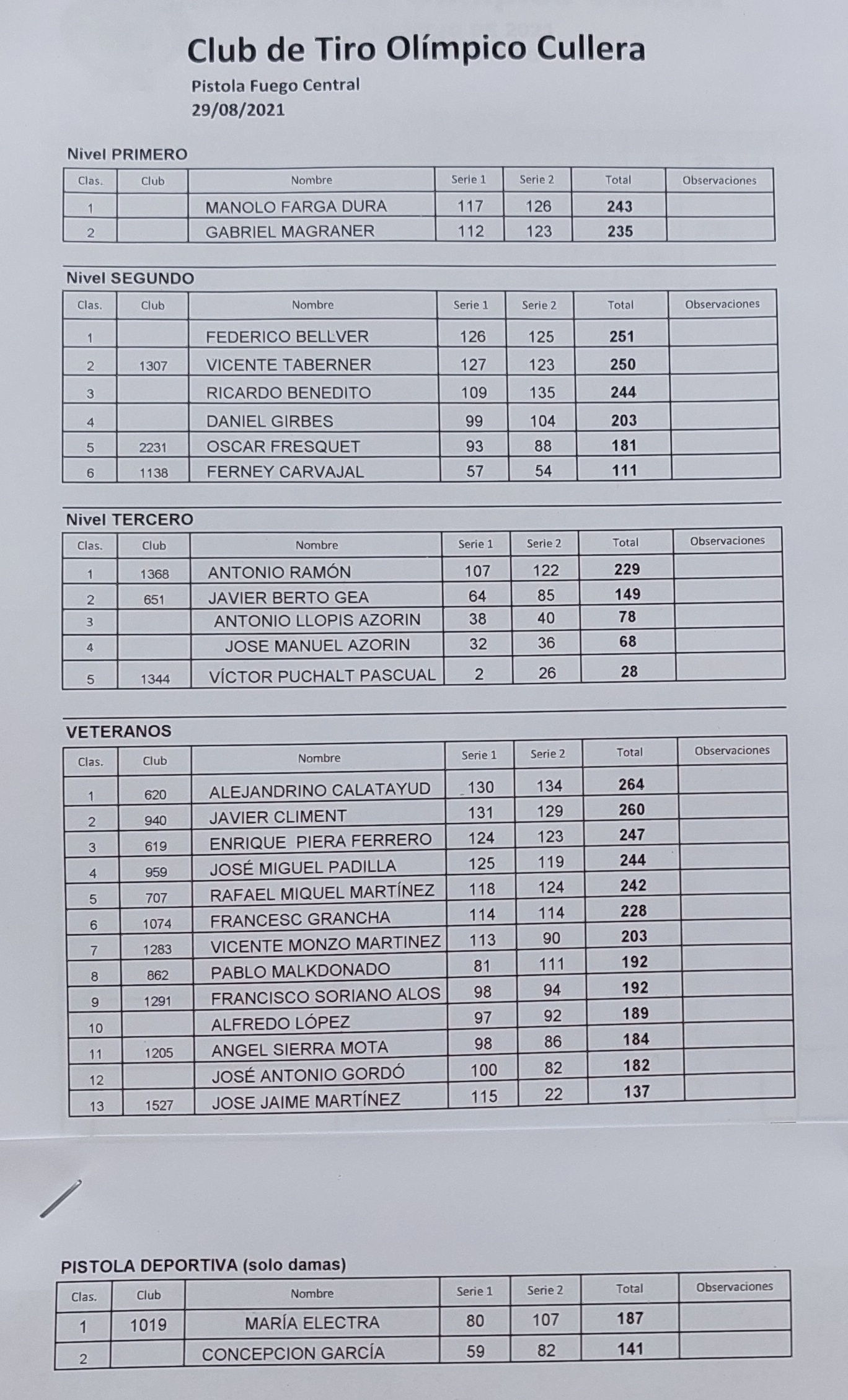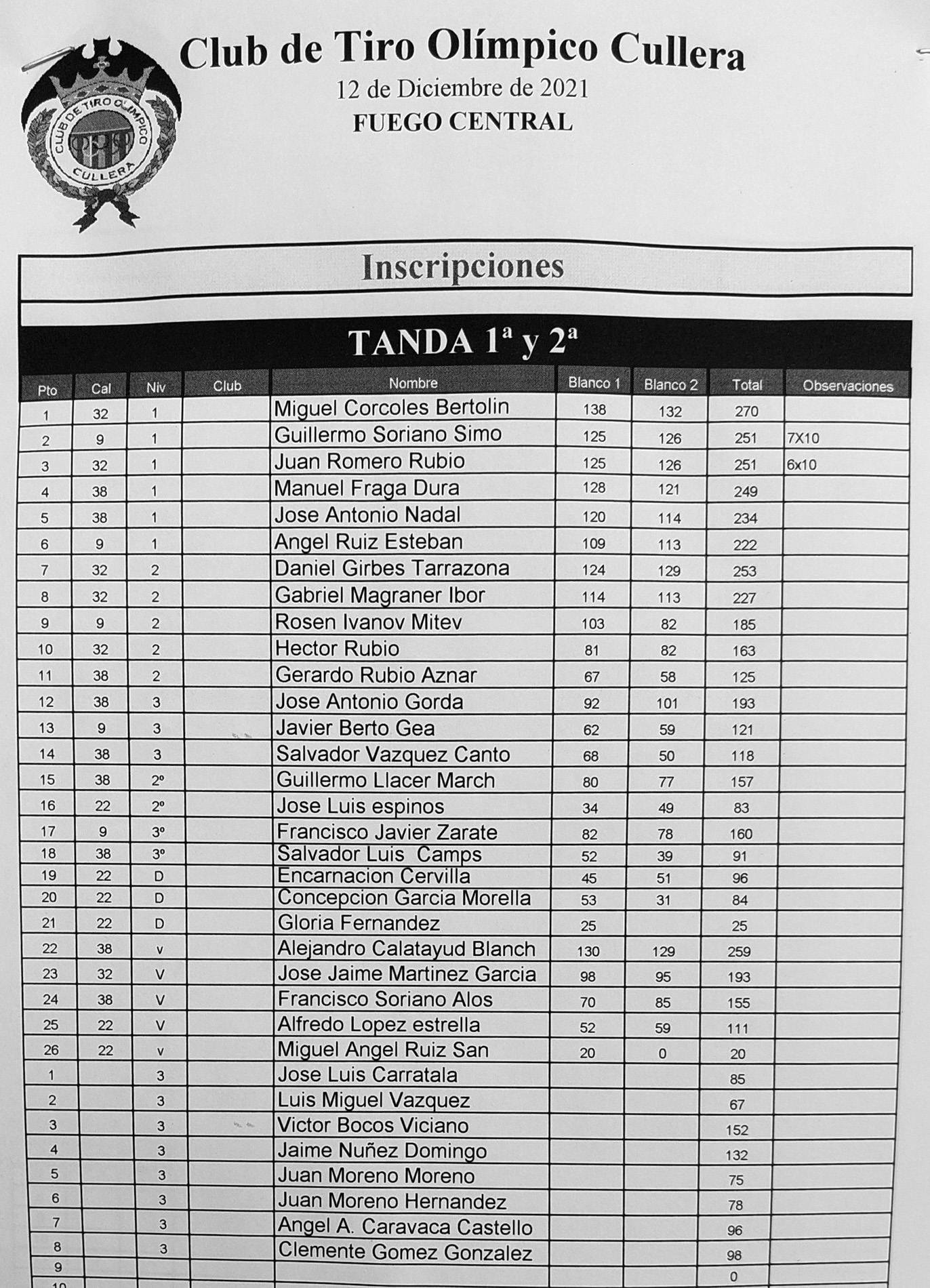 Los tiradores que participen en una competición organizada por el Club de Tiro Olímpico Cullera aceptan que se publiquen sus resultados deportivos, tanto en el tablón de anuncios como en el sitio web del Club. Los datos que se harán públicos serán: nombre y apellidos de todos los participantes, resultados y Club al que pertenecen.