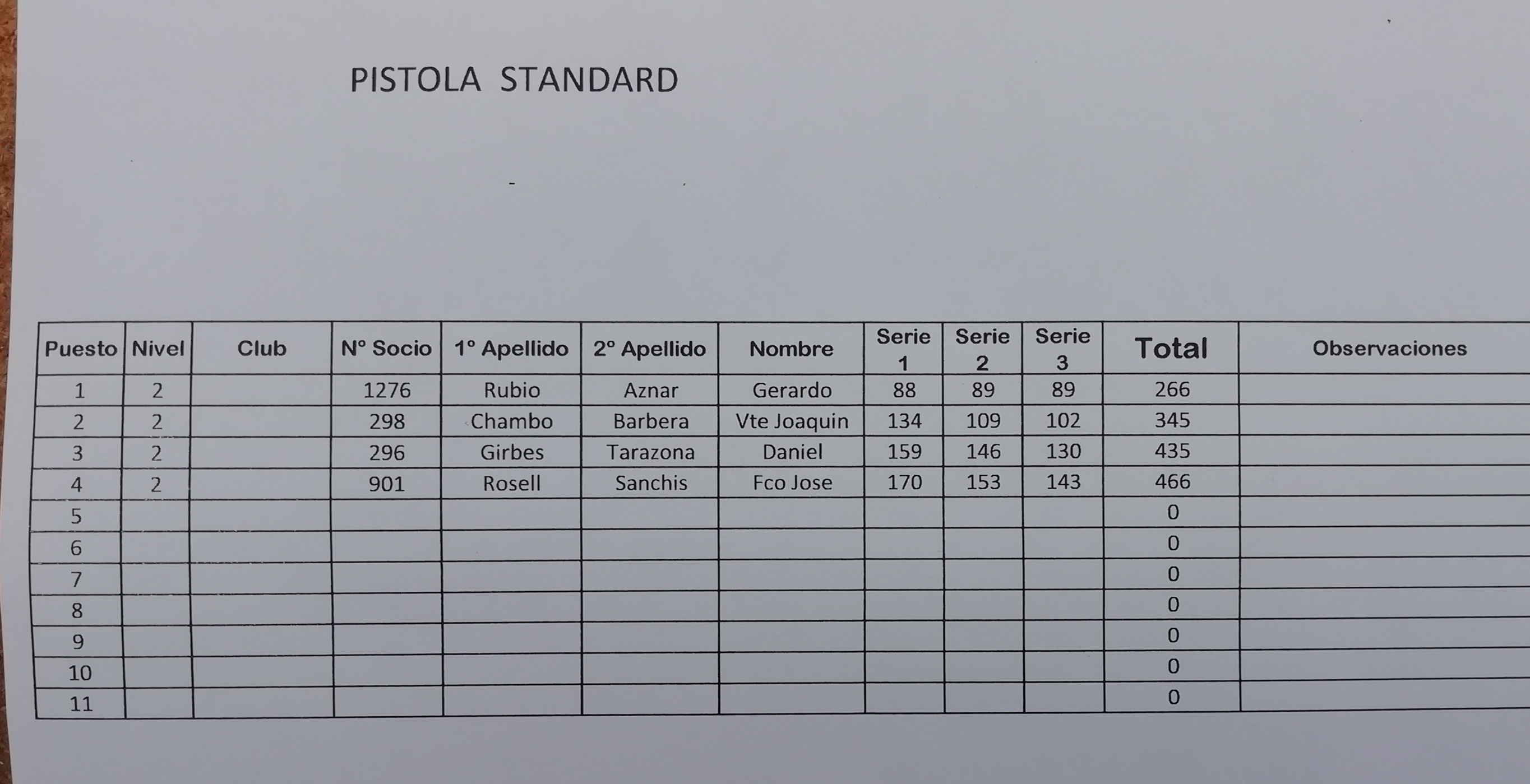 PISTOLA STANDARD Inscripción según las Normas vigentes publicadas en los últimos boletines.